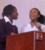 The program included a musical selection from sophomores Angela Caesar and Samantha Howard. They sang "His Eye Is on the Sparrow" acapella to the enjoyment of an audience delighted by their harmonious and intense voices.